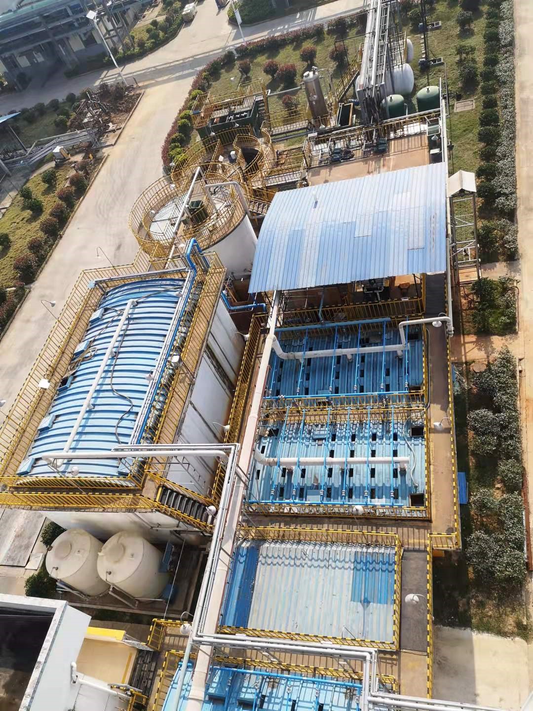 黄石世星药业有限公司污水站提标改造项目,日处理废水1000吨,采用“污水分流分治”技术+调节池+铁碳微电解工艺+多维复合催化氧化预处理工艺+三效蒸发工艺+UASB厌氧工艺+LX专利生物A/O废水处理系统+曝气生物滤池等复合工艺。